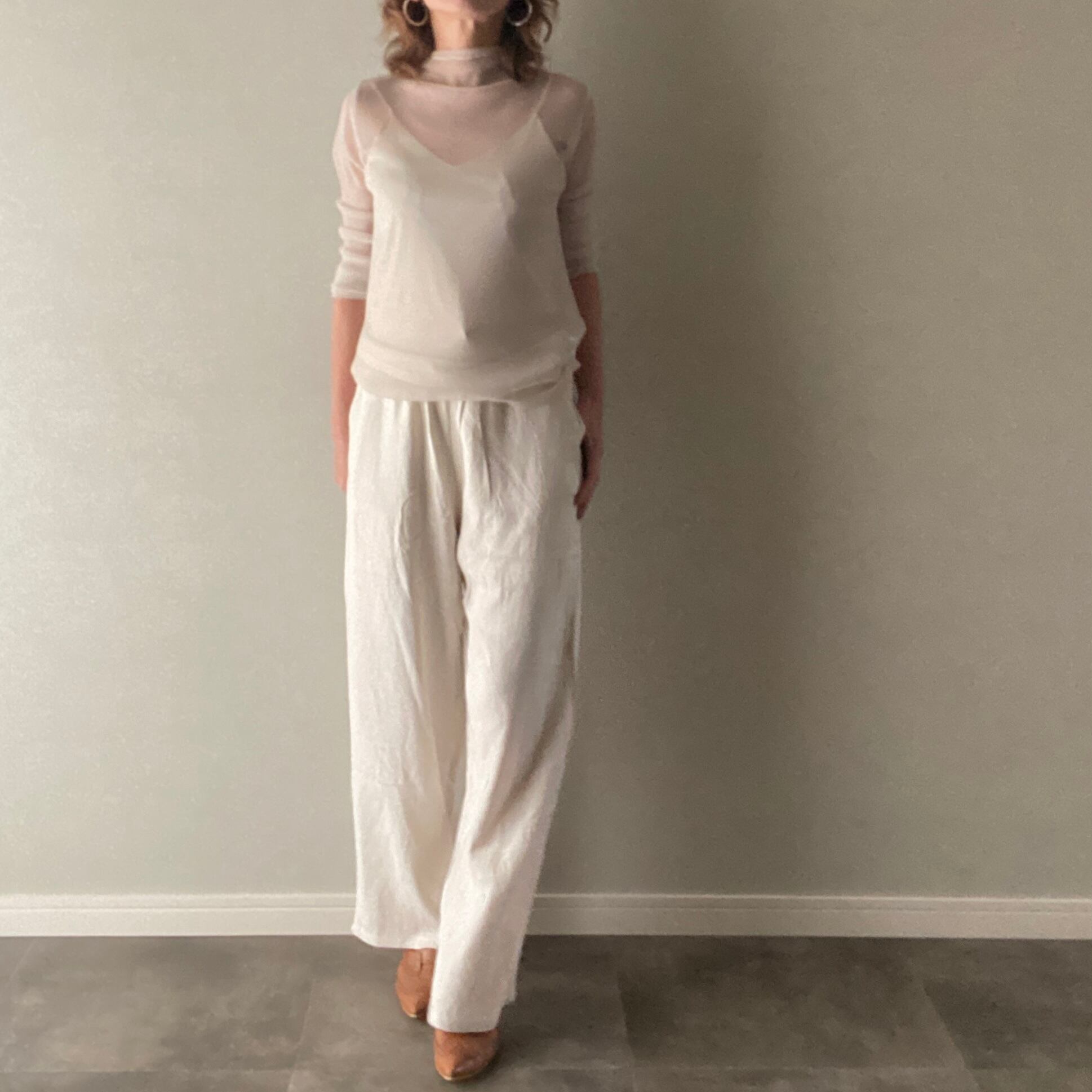 ワイドパンツ リネンブレンド キナリ 裏地付き Mサイズ【090230】