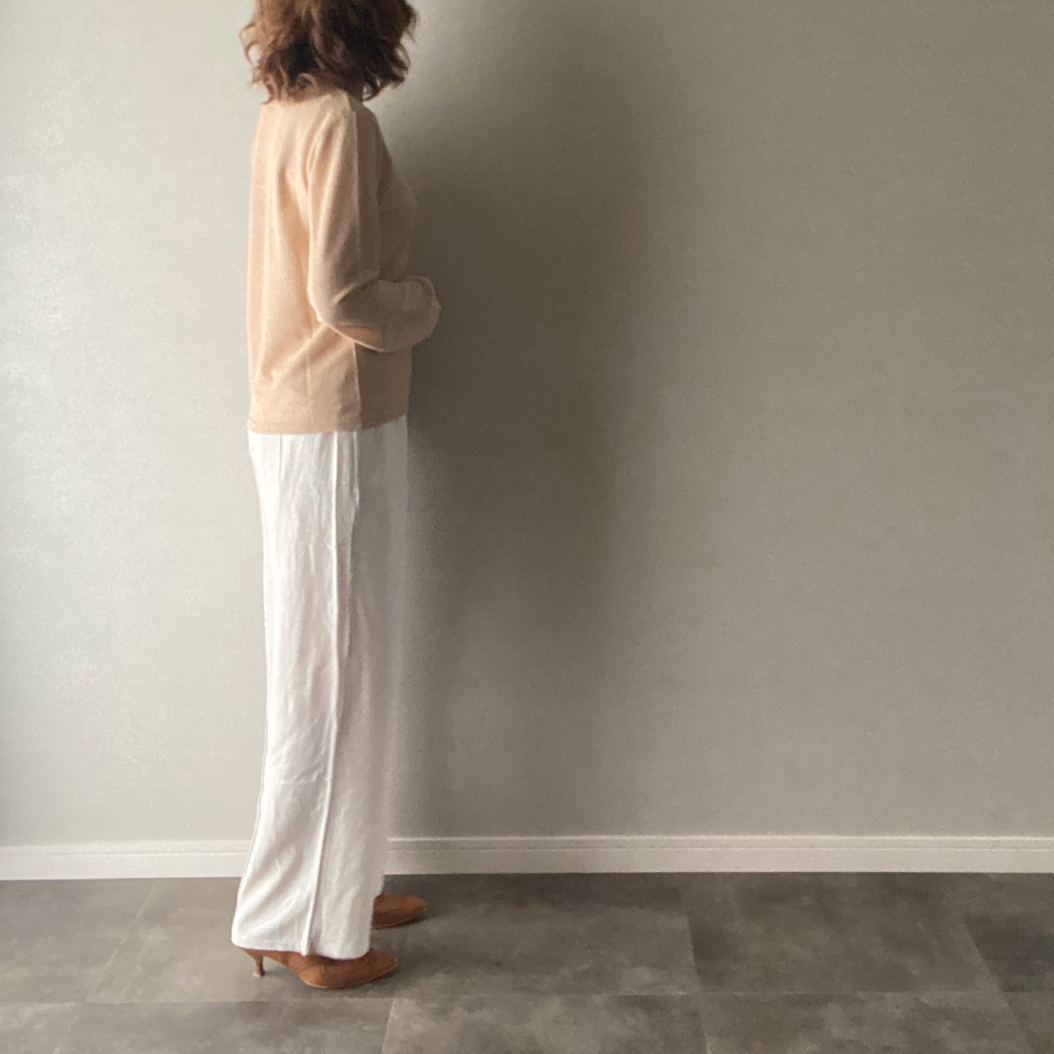 カットソー シアー 異素材スリーブ 長袖 ベージュ フリーサイズ 【090234】